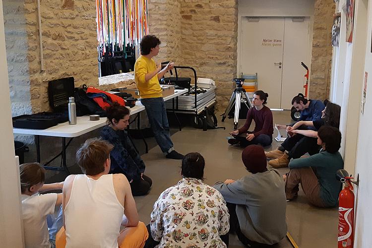 La technique, encadrée par Sophie Morice-Couteau, a permis à quatre jeunes étudiants en cinéma venus de Rennes et de l’option cinéma du Lycée Saint-Louis de Lorient, de s’exercer au son, à la lumière ou au script.